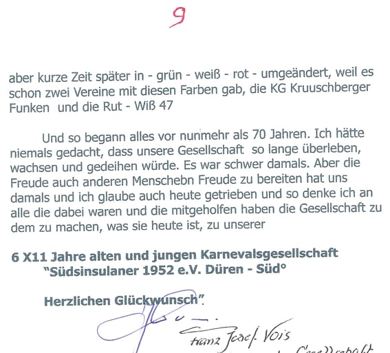 Theo Bienefeld, Dürener Mundart Dichter hat den Südinsulanern zum 33 jährigen Jubiläum ein Gedicht gewidmet, was nicht nur heute noch Gültigkeit hat.